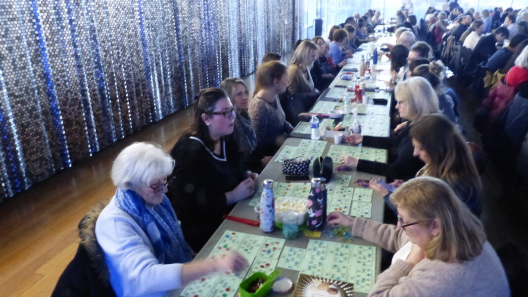 Ce sont près de 500 personnes qui ont participé au grand Loto des Resto du coeur, dans la magnifique salle des rencontres de la Mairie de Montpellier, dimanche 25 janvier. A coups de « le petit (1), le papé (90), la ville (7), un double (66), la police (17), chez nous (34), le Pastis (54), les parisiens (75) » etc. etc. les grilles se remplissent. De la salle fusent les « Boulègue !! », « va le chercher » à l’adresse du meneur de jeu. L’ambiance monte jusqu’au « QUINE ! » crié au coeur de la salle, accompagné d’une sourde rumeur de déception émise par ceux à qui il ne manquait qu’un chiffre pour gagner.